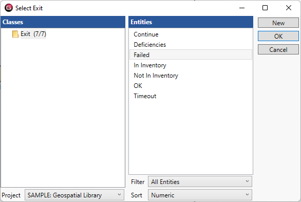 GENESYS will prompt you to select the existing exit of interest or create new entities of interest using the Insert Exit Node dialog.